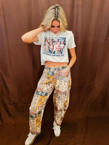 Throw on this oversized denim jacket and channel your inner '90s rebel. Featuring a classic bandana print that screams vintage cool, it's the perfe...