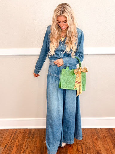 Saddle up in style with the Buttons Of Gold Denim Jumpsuit—your go-to piece for turning heads at the rodeo or anywhere else. This chic, all-in-one ...