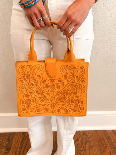 The Caroline is a stunning style. This crowd favorite boasts a beautiful hand tooled floral design, suede lined inside, and plenty of room for t...