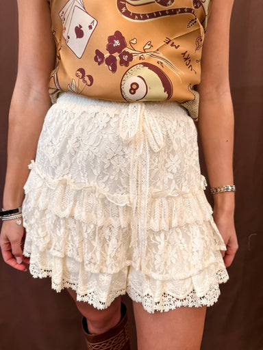 These lace tiered mini shorts are perfect for effortlessly chic and playful outfits. Pair them with a simple knit top or a delicate blouse for a dr...