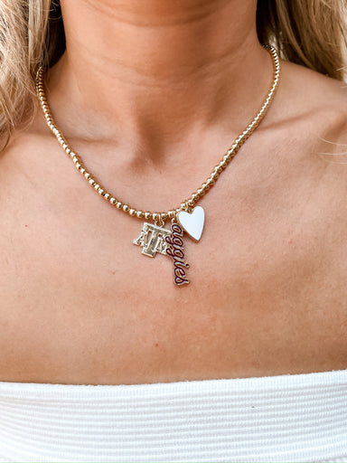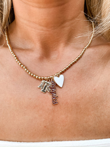 Add some sparkle to your team spirit with the Texas A&M Aggies Ball Bead Charm Necklace in Shiny Gold. The gold ball beads paired with the Aggi...