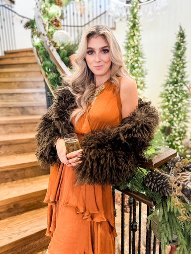 Elevate your outerwear collection with the INAYA COAT DARK ESPRESSO, a long-sleeved faux fur jacket designed for both warmth and refined style. Cra...