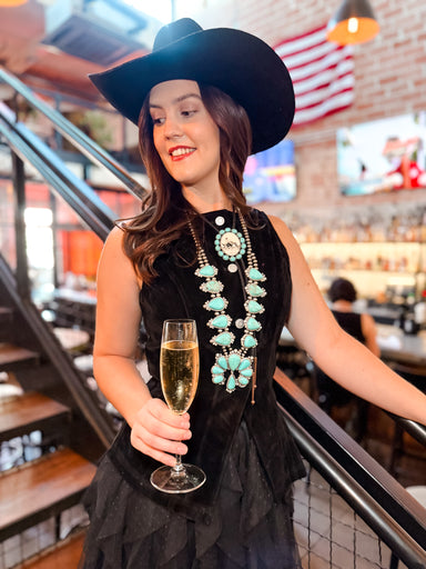 Saddle up for serious style with the Alessandra Pleated Skirt. This bold beauty features sharp pleats that catch the light with every twirl, making...