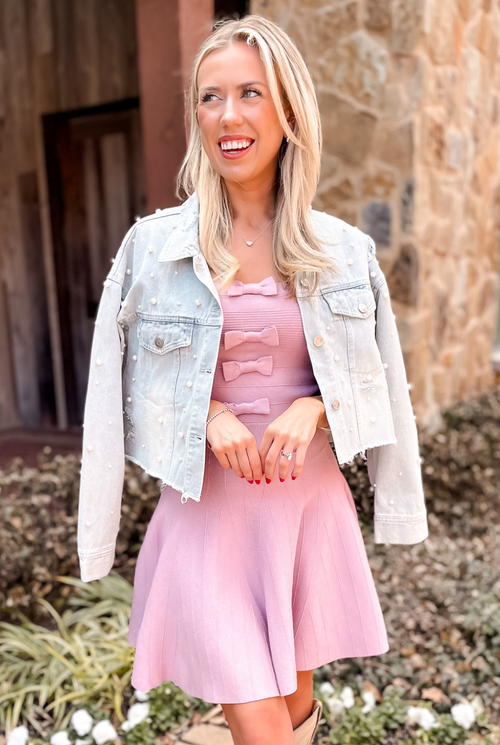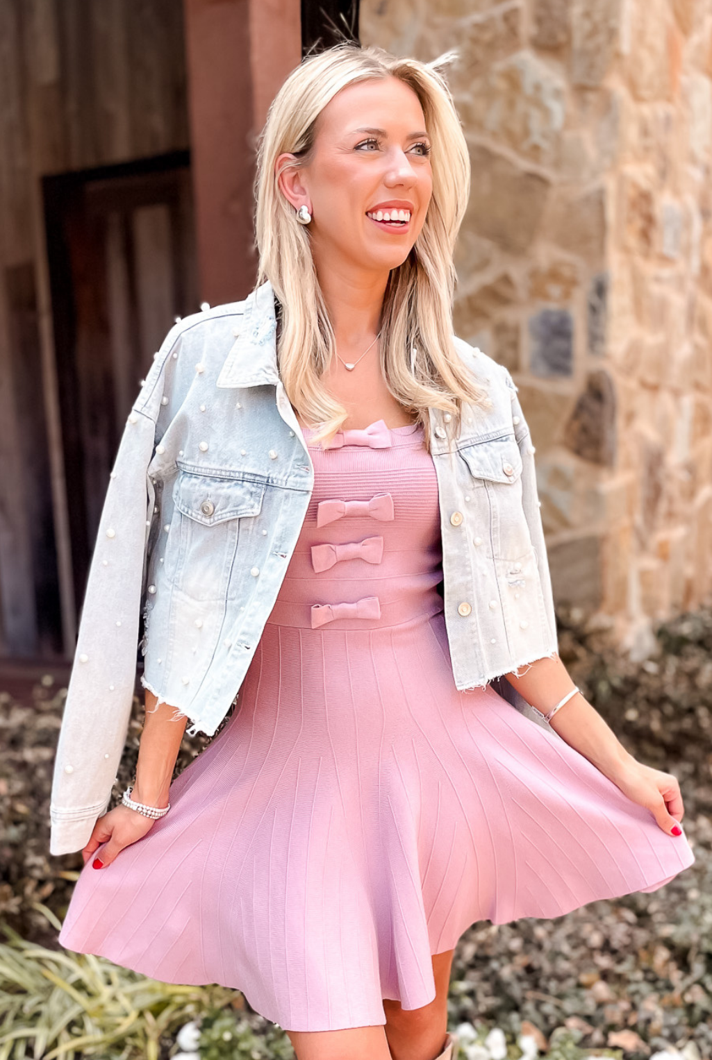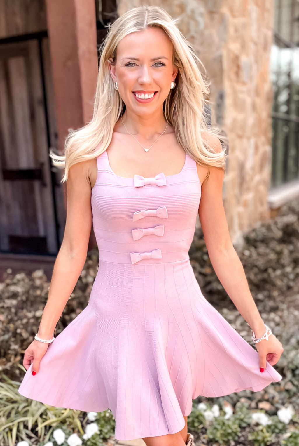 Get ready to be the cutest on the block with our Bows In A Row Knit Dress! This lightweight, soft and feminine dress is the perfect go-to for Spring. Pair it with our light boots or cute sneakers for a playful and adorable look. You'll be the envy of all your friends!