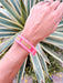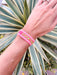 Make a statement in these fun woven bracelets! Available in several sayings and colors, there's one for everyone. Lightweight and adjustable, these are the perfect addition to any outfit. Just throw in the dishwasher to clean!