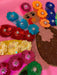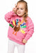 - Pink sweatshirt with sequin turkey and rainbow flower feathers
