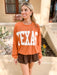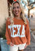 Show off your love for Texas with this ribbed oversized top. Perfect for any casual occasion, it's both comfy and cute. Pair it with leggings or jeans for a versatile look. Y'all are going to love it (and its Texas pride)!
