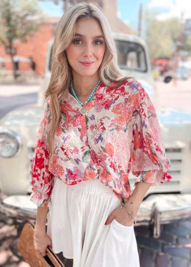 Elevate your everyday style with this charming Fall Floral Top—the perfect piece for mixing and matching. Pair it with a flowing skirt for a polis...