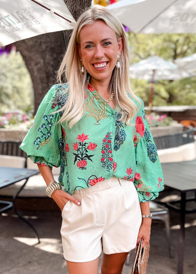 Embrace sunny days with the Oriental Garden Top in Green—a lightweight, breezy blouse that adds a splash of playful charm to your summer wardrobe. ...