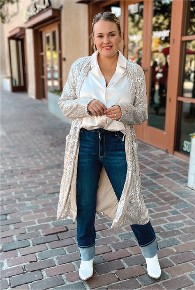 Unleash your inner showstopper with our Sequin Duster! This versatile layering piece adds a pop of sparkle to any outfit. Perfect for stealing the ...