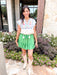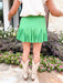 Everyone is gong to look your way while you're rocking this adorable skort! The ruffled detailing is so flowy and fun! The elastic waist also keeps this skort both comfy and flattering! This skort features an elastic waistband with tied detail, ruffles, and a full shorts lining.