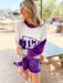 Show your TCU pride in style with this Licensed TCU Pennant Sweater. Featuring bold colorblock sleeves and adorned with a classic pennant design, this sweater combines spirited detail with comfortable wearability. Perfect for game days or casual outings, its unique design lets you stand out while representing your team with confidence.