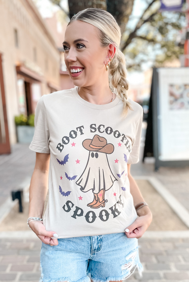 Spookily stylish and great for Halloween, this tan Boot Scootin' Tee will make a spook-tacular addition to your wardrobe. Featuring a ghost with a ...