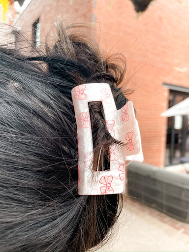 Jumbo Cherry Bow Rectangle Hair Claw Clips, these eye-catching clips feature a charming cherry bow design atop a sturdy rectangle base, offering bo...