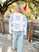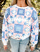 Embrace joyful style with the Ivory, Blue, & Light Pink Patchwork Sweatshirt Queen of Sparkles. This cozy sweatshirt combines soft colors in a vibrant patchwork design, creating a unique and lively look. Perfect for daily wear, it adds a playful sparkle to your outfit while keeping you comfortable and warm. Celebrate your individuality with this standout piece made to brighten any day!