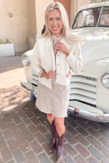 Wrap yourself in cozy charm with this adorable Almond Latte Western Jacket. Featuring a delightful western print, it's the perfect layering piece f...