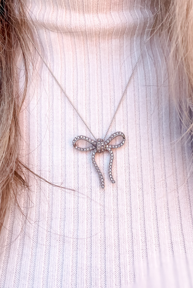 The Illumina Bow necklace is flowy and delicate with a bit of whimsy. It truly has the characteristics of a real ribbon delicately knotted. Glisten...