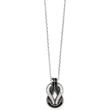 This two-tone black enamel necklace is a reversible medium sized Hercules knot which has been used in jewelry for many centuries. Sculptural wit...