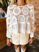 Embrace cozy charm with this Floral Eyelet Crochet Top, where boho vibes meet delicate design. Its dainty crochet pattern adds a whimsical touch to your everyday look, making it perfect for layering on cool days or dressing up your casual style with a playful twist. Lightweight yet warm, this sweater invites you to stay comfy while showing off your carefree spirit.