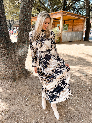 Saddle up for timeless elegance with this stunning pleated maxi dress that effortlessly blends equestrian sophistication with everyday chic. The cl...