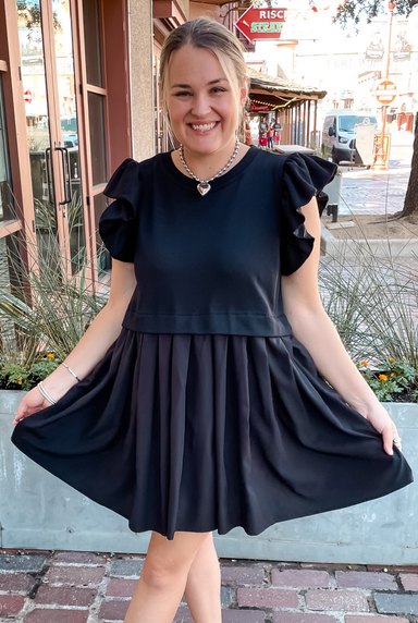 Unleash your inner fashion warrior with the Duel Fabric Dress in Black. This versatile piece boasts a perfect balance of cuteness and comfort, mak...