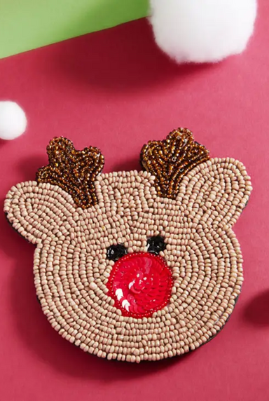 The perfect stocking stuffer to add some Christmas cheer to your home! Seed-Beaded Reindeer Design Home Coaster Perfect Gift for the Holiday Sea...