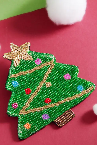 The perfect stocking stuffer to add some Christmas cheer to your home! Seed-Beaded Christmas Tree Design Home Coaster - Perfect Gift for the Holi...