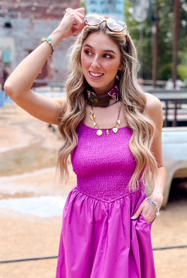 The Tatum Dress is the perfect choice for any occasion. Chic and flattering, it will have you looking your best at weddings or dinners on the patio...