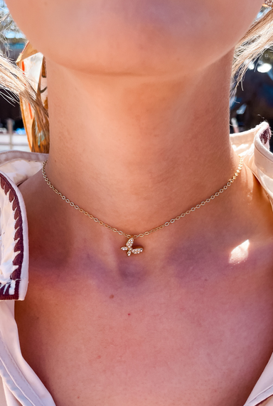 Add a touch of western charm to any outfit with this playful Bolo Butterfly pendant. Crafted with brass plating, its delicate butterfly design flut...
