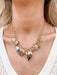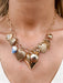 Blue Ceramic Porcelain Heart with Multi-Heart Charm on Link Necklace, a stunning blue ceramic porcelain toile pattern heart pendant paired with a collection of multi-heart charms elegantly stationed on a sturdy link chain. The harmonious blend of bold and delicate details makes it a versatile statement piece.