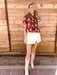 Add a touch of vintage charm to your fall wardrobe with this embroidered puff sleeve peplum top. Crafted from a beautifully textured maroon fabric, this blouse features delicate white floral embroidery throughout, giving it a feminine and timeless look. Designed with a flattering peplum hem, short puff sleeves, and a trio of adjustable front tie closures, this top is both playful and elegant.