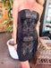 Turn heads with this Stitched + Fringe Dress in Black, perfect for bringing those rodeo vibes to your next night out. The form-fitting silhouette hugs your curves while playful fringe details add movement and flair, making it a standout choice for the NFR season. Embrace your bold side and dance the night away in style and confidence.