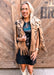 Our cape brings bold sophistication to your lineup. Constructed from premium faux suede, this cape stuns with embroidered western motifs on both the front and back panels. The open poncho design allows for easy layering, while the long fringe hem adds movement and western drama. Style it over jeans or a skirt for a look that speaks to both heritage and high fashion. An essential piece for retailers looking to stock trend-forward western apparel with timeless cowgirl flair.