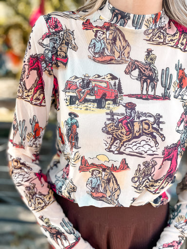 This playful top brings the wild west to your wardrobe with a smocked design and mesh material. Perfect for adventures or a casual day out with fri...