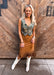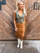 Unleash bold Western flair with this Camel Suede Fringe Skirt. Crafted from soft faux suede with a rich camel hue, this high-rise mini skirt brings rustic charm to any cowgirl’s wardrobe. The standout feature is the long, dramatic fringe hemline that dances with every step, while antique brass studs accent the western yoke and bottom hemline for added texture and authenticity. Designed with a flattering A-line silhouette, this skirt hugs the waist and flows comfortably, creating a sleek yet fierce look ideal for rodeo nights, concerts, or rustic photoshoots. Pair it with corset tops or embroidered snap shirts for an unforgettable Western ensemble.