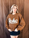 Saddle up in style with this adorable Rodeo Sweater! Featuring "rodeo" emblazoned across the front, this cozy layer wraps you in cloud-soft comfort that's perfect for casual days or weekend adventures. The rich brown hue pairs effortlessly with any outfit, while the plush fabric keeps you snug and hugged all day long. Whether you're a rodeo enthusiast or just love that laid-back Western vibe, this sweater brings charm and coziness in one irresistible package.