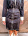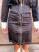Command attention with this edgy western-chic pencil skirt. Crafted from soft stretch suede, this high-waisted skirt features a sleek, body-hugging silhouette adorned with metallic silver stud accents and a bold, fully functional front zipper. The design is striking yet feminine—balancing rugged western attitude with city-ready polish. Perfect for rodeo nights, country concerts, or boutique customers who crave standout statement pieces. Whether paired with a basic tank or a rhinestone snap shirt, this skirt is the perfect addition to any modern cowgirl’s wardrobe.