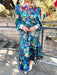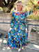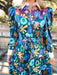 The Jublio Dress is a statement maxi dress with a tailored silhouette. Featuring a crisp white collar and cuffs that contrast against the bold multicolored floral print in blues, it blends elegance with playful vibrancy. The long sleeves and button-down design create a structured look, making it perfect for both polished daywear and chic evening occasions.