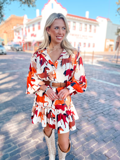 Unleash your inner wild with the Mustang Magic Dress in white! Featuring our best-selling print in a new, playful style, this dress is perfect for ...