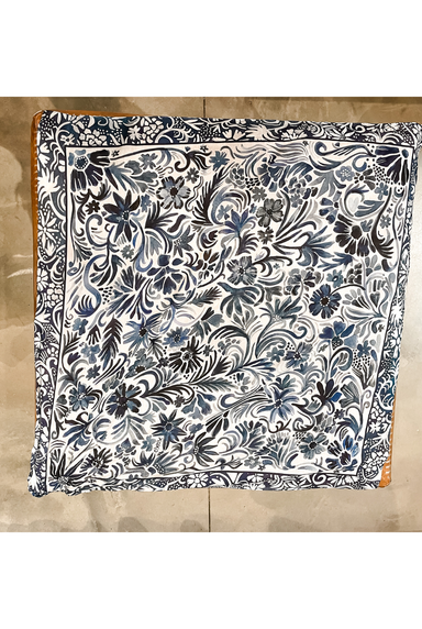 DETAILS100% silk made in ItalyUnique, hand-drawn print with strong personalityRolled edges SIZEScarf: 90 cm x 90 cm CRAFTING AND SHIPPINGAll scarv...