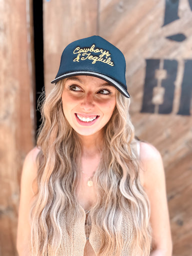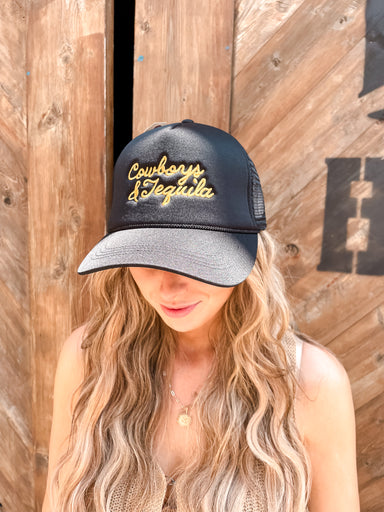 Cowboys &Tequila Embroidery Mesh Back Trucker Hat "Cowboys & Tequila" Text Embroidery 5 Panel Trucker Hat Meshed Back Casual Hat for Every...