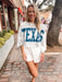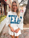 Stay cozy and show off your Texas pride with this oversized cropped sweatshirt. Perfect for lounging around or cheering on your favorite team during game days, it combines comfort with a playful, stylish vibe. Whether you're relaxing at home or out with friends, this sweatshirt keeps you looking cute and feeling great.