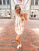 Styled with the Freshwater Pearl Heart Necklace, Hand Painted Daisy Hair Clip, Heart Coin Pearl Charm Bracelet, Golden Heart & Pearl Bracelet, Kingman Turquoise Pink Opal Earrings, and Lasso Sandal.