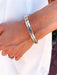 Inspirational words and small crystal highlights make this bangle both meaningful and fashionable. Etched saying "Some people come into our lives, leave footprints on our hearts, and we are never the same."