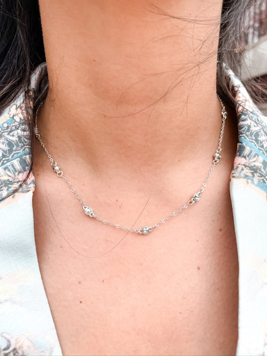 Recalling Celtic motifs, the interlocking knot on this silver necklace signifies love and life. Classic and everyday wearable. Finish ...
