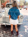 Styled with the Double Pocket Denim Top, Howdy Cowboy Patch Baseball Cap, Orange Heart Scarf Necklace, Mosaic Paseo Bandit, Roped Heart Bandit, One Heart Charm Bracelet, and Hensley Boot.