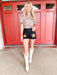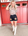 Saddle up for a good time with the Stars & Studs Shorts! These playful shorts are perfect for a western adventure or a night out on the town. With fun star and stud details, you'll be the star of the rodeo (or the party)!