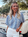 Gingham Embroidered Top - Blue