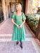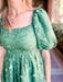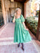 Designed with a midi length and flowy silhouette, this dress moves gracefully with you, whether you're strolling through a garden or attending a brunch date. Finished with a back tie and available in both rose and emerald green hues, it's the perfect blend of style and wearability.