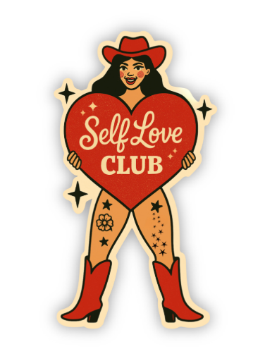 Join the club that never goes out of style! This bold and empowering “Self Love Club” sticker features a fierce cowgirl holding a giant red heart, ...